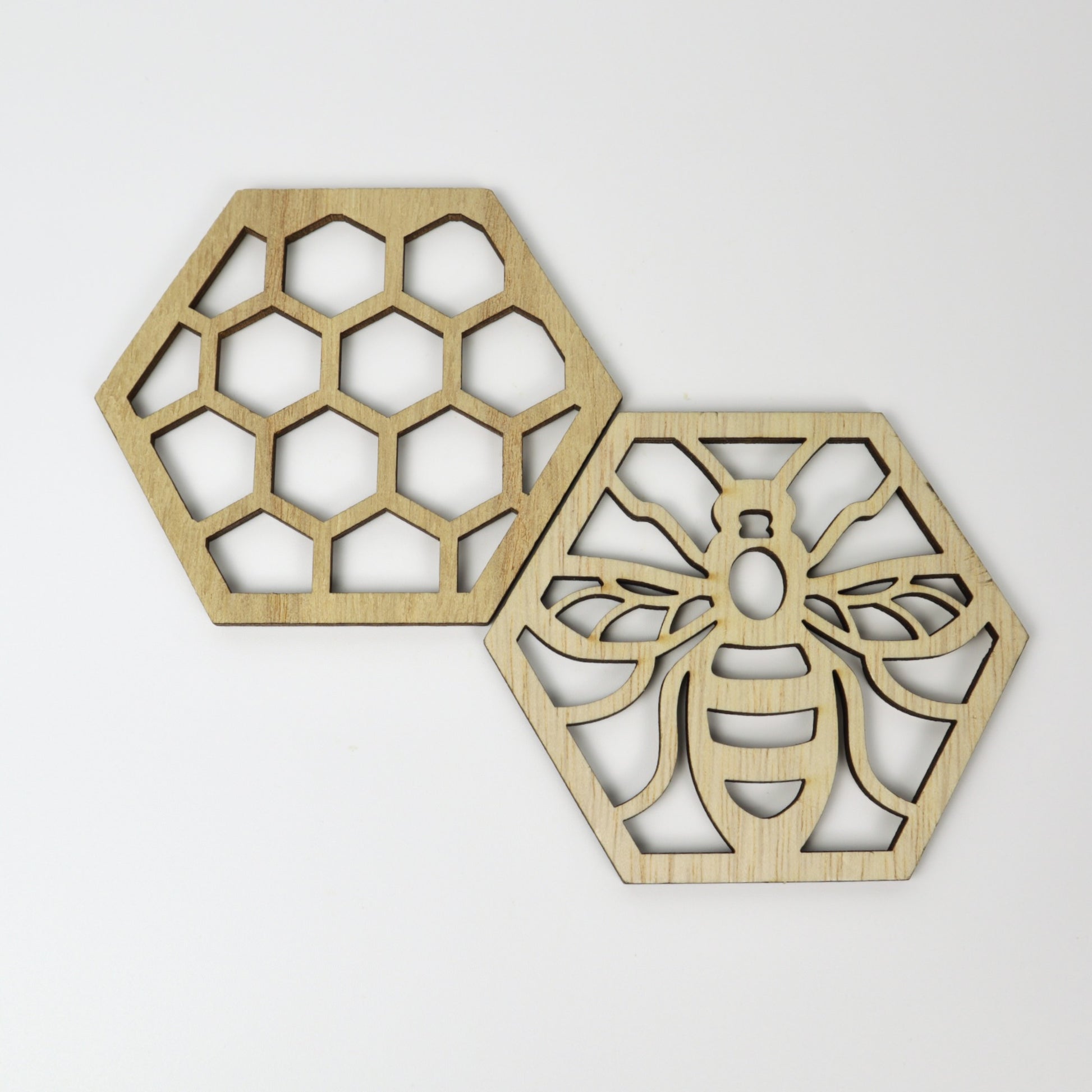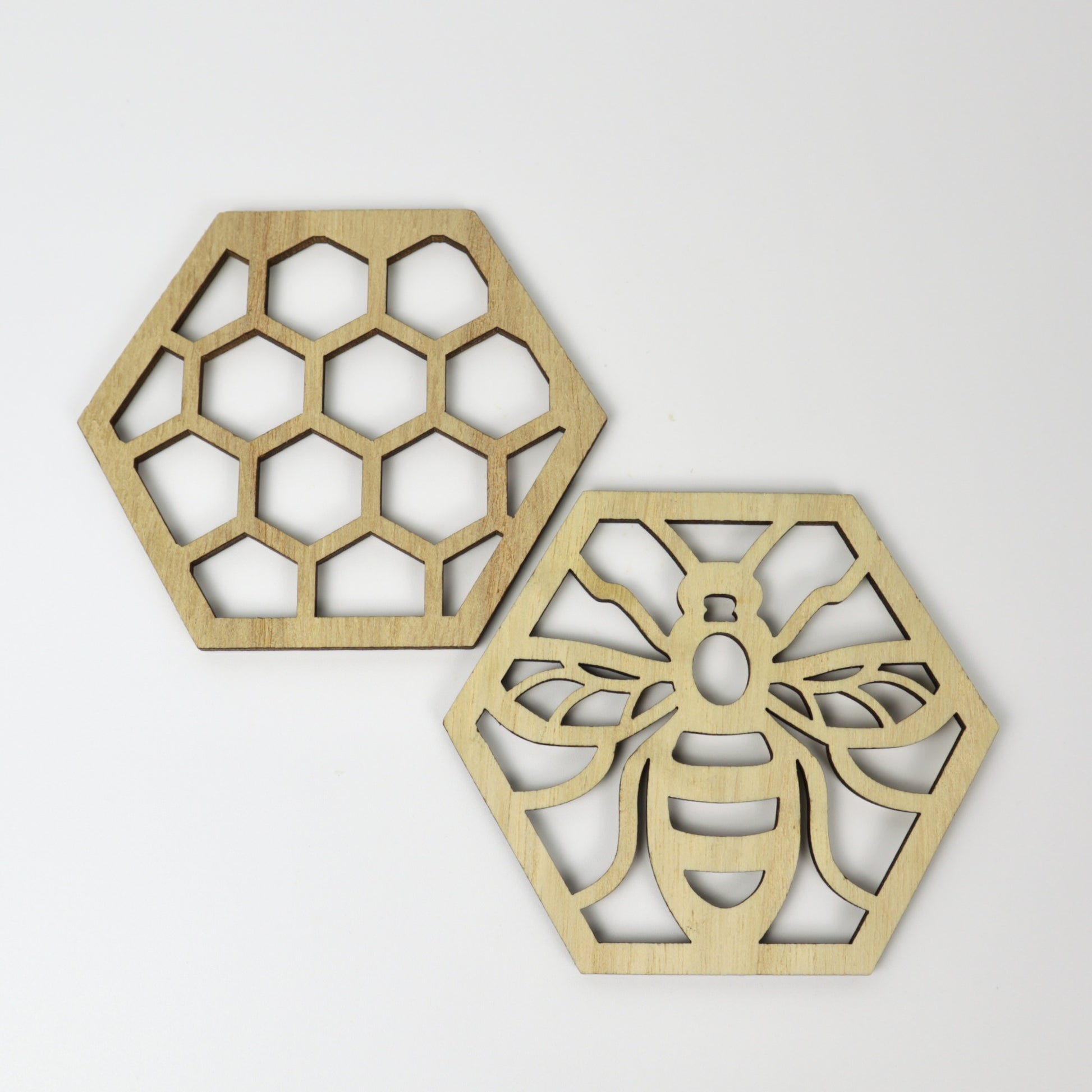 Posavasos de madera de 2 piezas con forma de abeja y colmena