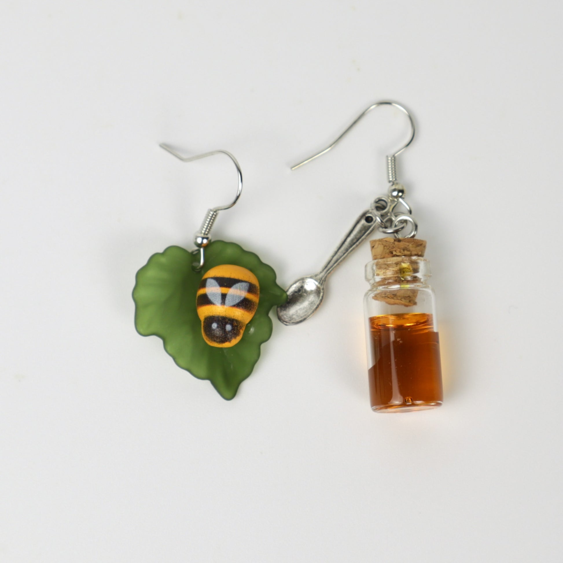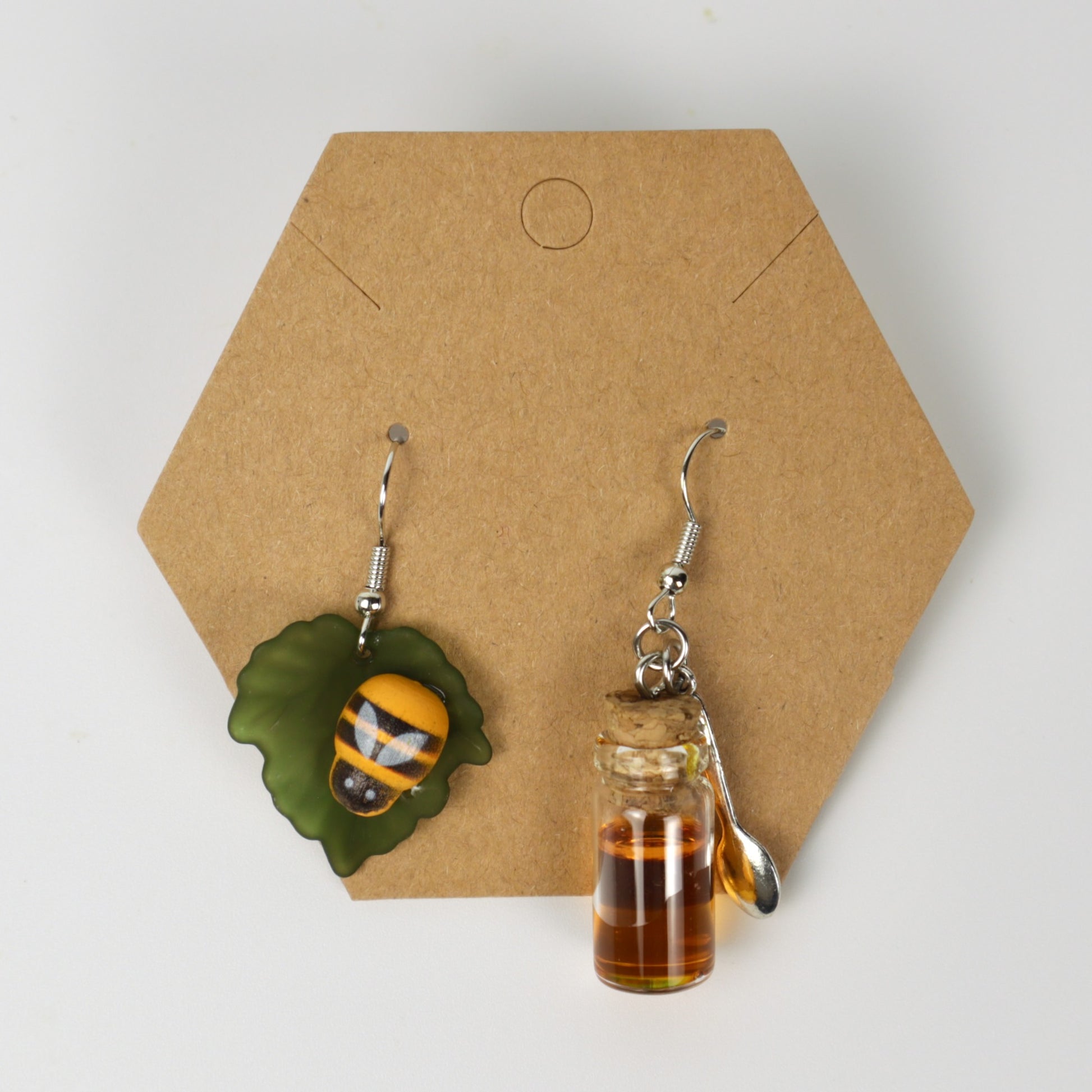 Endulza tu estilo con nuestros pendientes de abeja y tarro de miel. Estos encantadores pendientes presentan diseños encantadores de abejas y tarros de miel que celebran la generosidad de la naturaleza. Elaborados con materiales de alta calidad, son livianos y cómodos para usar durante todo el día, lo que los hace perfectos para cualquier ocasión. Ya sea que te vistas elegante para salir de noche o que le agregues un toque divertido a tu look diario, estos pendientes seguramente serán el tema de conversación. ¡Abraza tu amor por la naturaleza y agrega un poco de dulzura a tus accesorios con estos extravagantes pendientes!