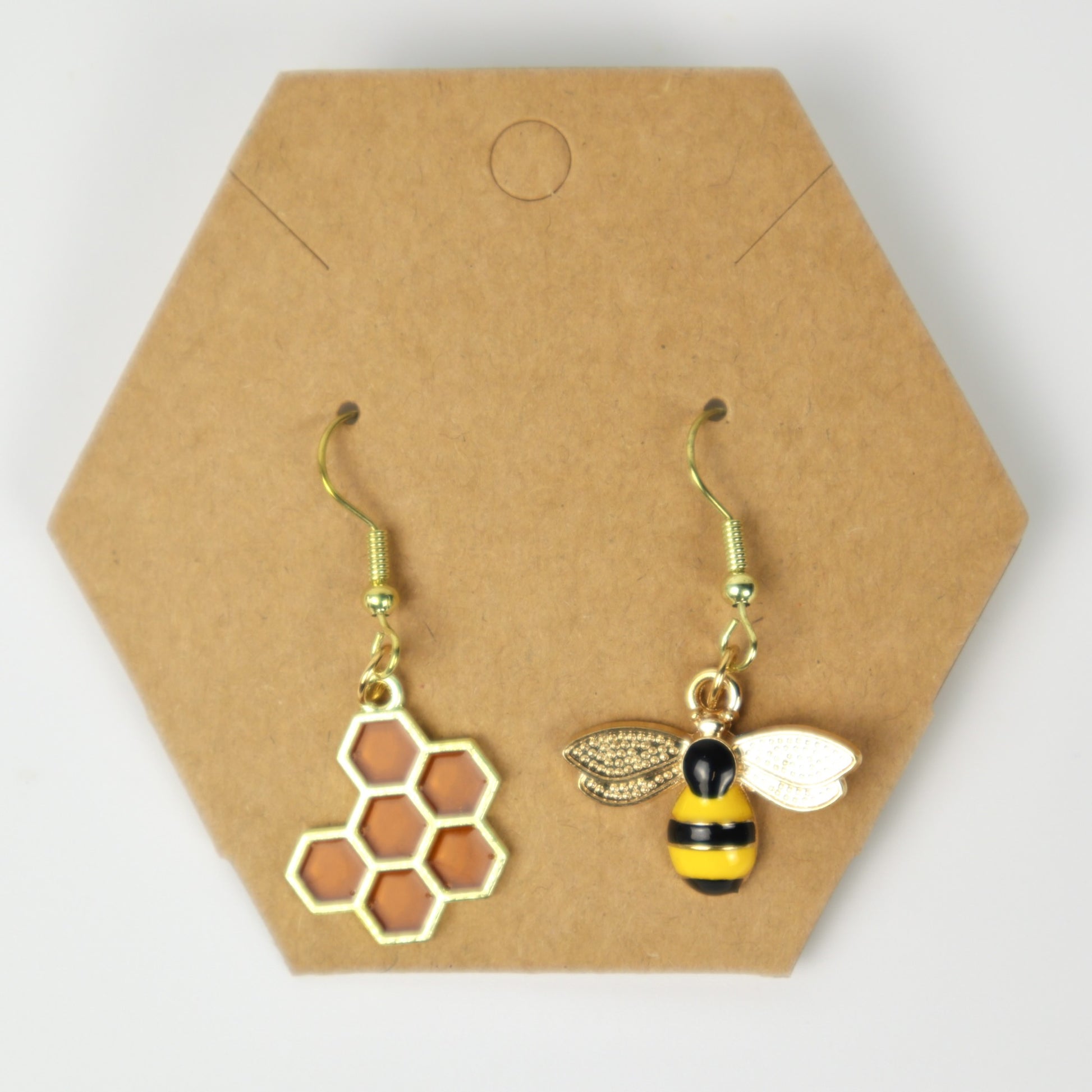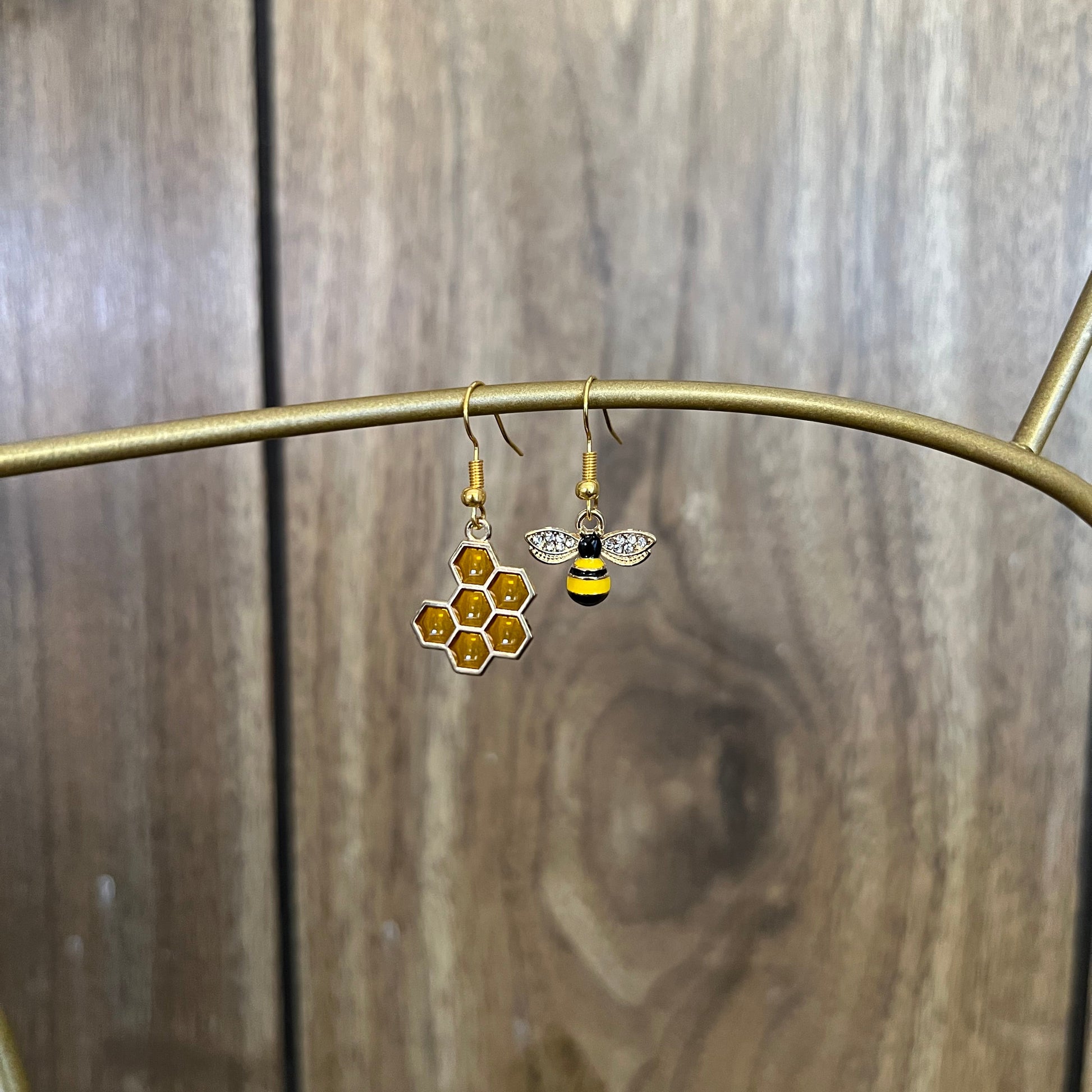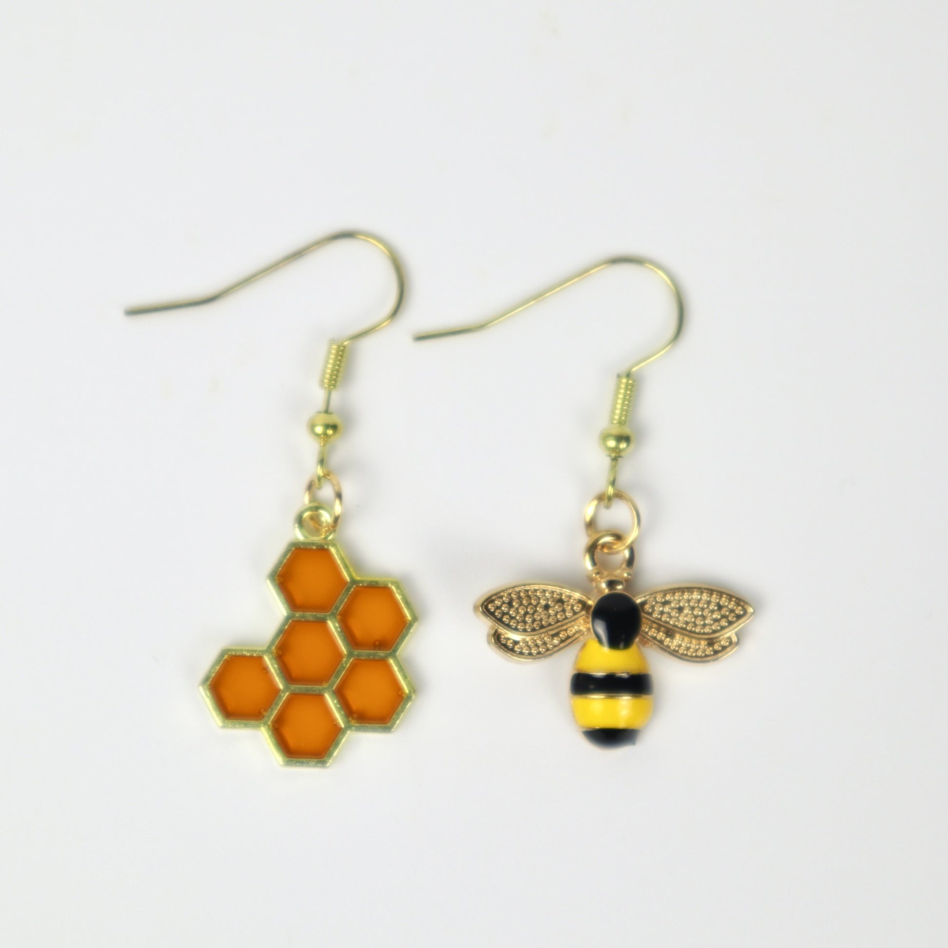 ¡Agrega un toque divertido a tu look con nuestros aretes con forma de abeja y panal! Este encantador par desigual presenta un arete con la forma de una delicada abeja, mientras que el otro presenta un panal bellamente elaborado. Juntos, crean una armonía perfecta de elegancia y extravagancia inspiradas en la naturaleza. Ligeros y versátiles, estos aretes son ideales para agregar un toque único a tus atuendos diarios o para marcar tendencia en ocasiones especiales. ¡Perfectos para los amantes de las abejas y para cualquiera que aprecie el diseño creativo!