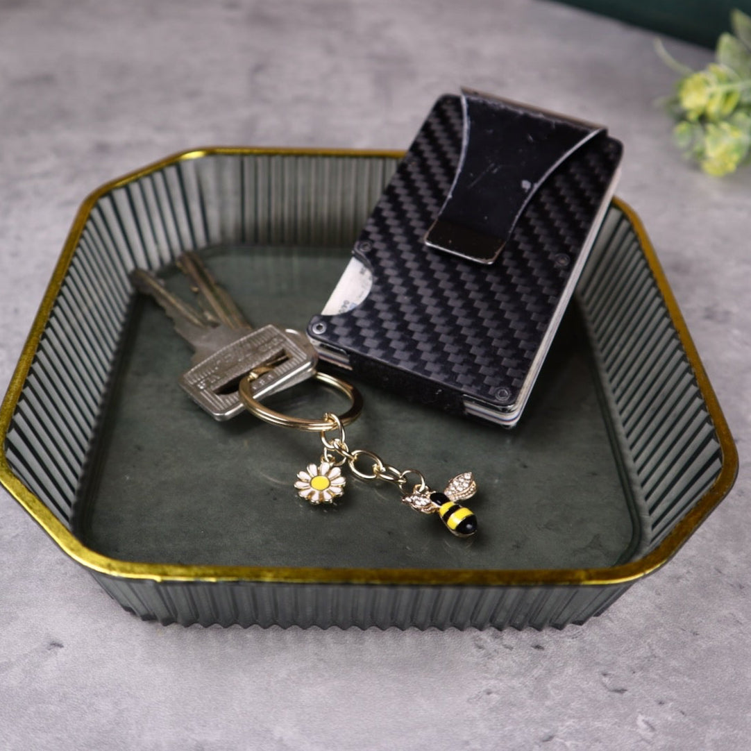 Añade un toque de elegancia a tus accesorios con nuestro llavero de abeja con una lujosa cadena dorada. Este llavero de hermoso diseño muestra un dije de abeja detallado, que se complementa perfectamente con la cadena dorada para lograr un estilo elegante y sofisticado. Ideal para sujetarlo a tus llaves, bolsos o mochilas, combina practicidad con un toque de sofisticación. Ya sea como accesorio personal o como un regalo considerado, ¡este llavero de abeja seguramente causará sensación dondequiera que vayas!