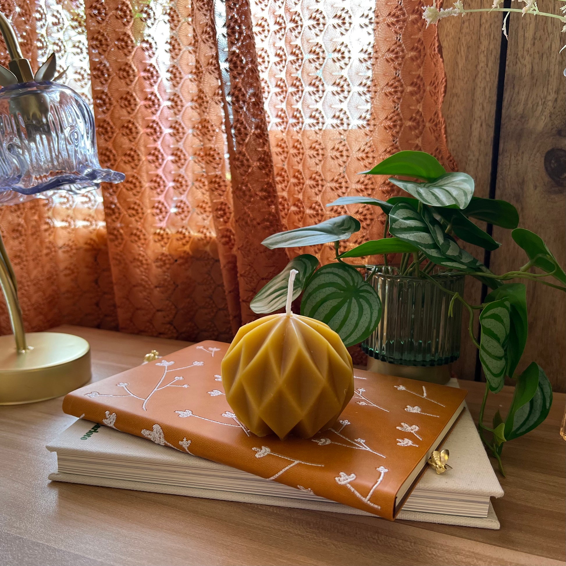 Ilumina tu espacio con nuestra vela de cera de abejas con forma de bola geométrica hecha a mano, un verdadero testimonio del arte de la naturaleza. Obtenida directamente de nuestras propias colmenas, esta vela única combina la pureza de la cera de abejas natural con un llamativo diseño de bola geométrica. Cada vela está elaborada meticulosamente para garantizar una combustión limpia y duradera que llena tu habitación con el cálido y sutil aroma de la miel. Perfecta para crear un ambiente acogedor o como un regalo considerado, nuestra vela de cera de abejas con forma de bola geométrica es a la vez una delicia decorativa y un guiño a la vida sostenible y ecológica. Ilumina tu vida con el brillo natural de la cera de abejas.