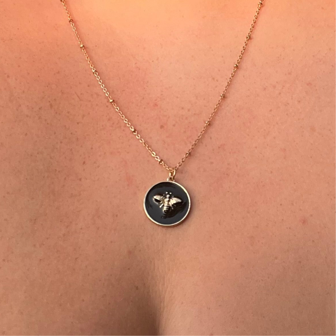 Haz una declaración con nuestro collar redondo con decoración de abejas, una pieza impresionante que muestra de forma hermosa tu amor por la naturaleza. Este llamativo collar presenta un colgante redondo adornado con un encantador motivo de abejas sobre un fondo elegante. Elaborado con materiales de alta calidad, ofrece durabilidad y estilo, lo que lo hace perfecto para el uso diario o para ocasiones especiales. Ya sea combinado con otras piezas o usado solo, este collar agrega un toque de elegancia caprichosa a cualquier atuendo, lo que lo convierte en un accesorio encantador para los entusiastas de las abejas y los amantes de la naturaleza por igual.