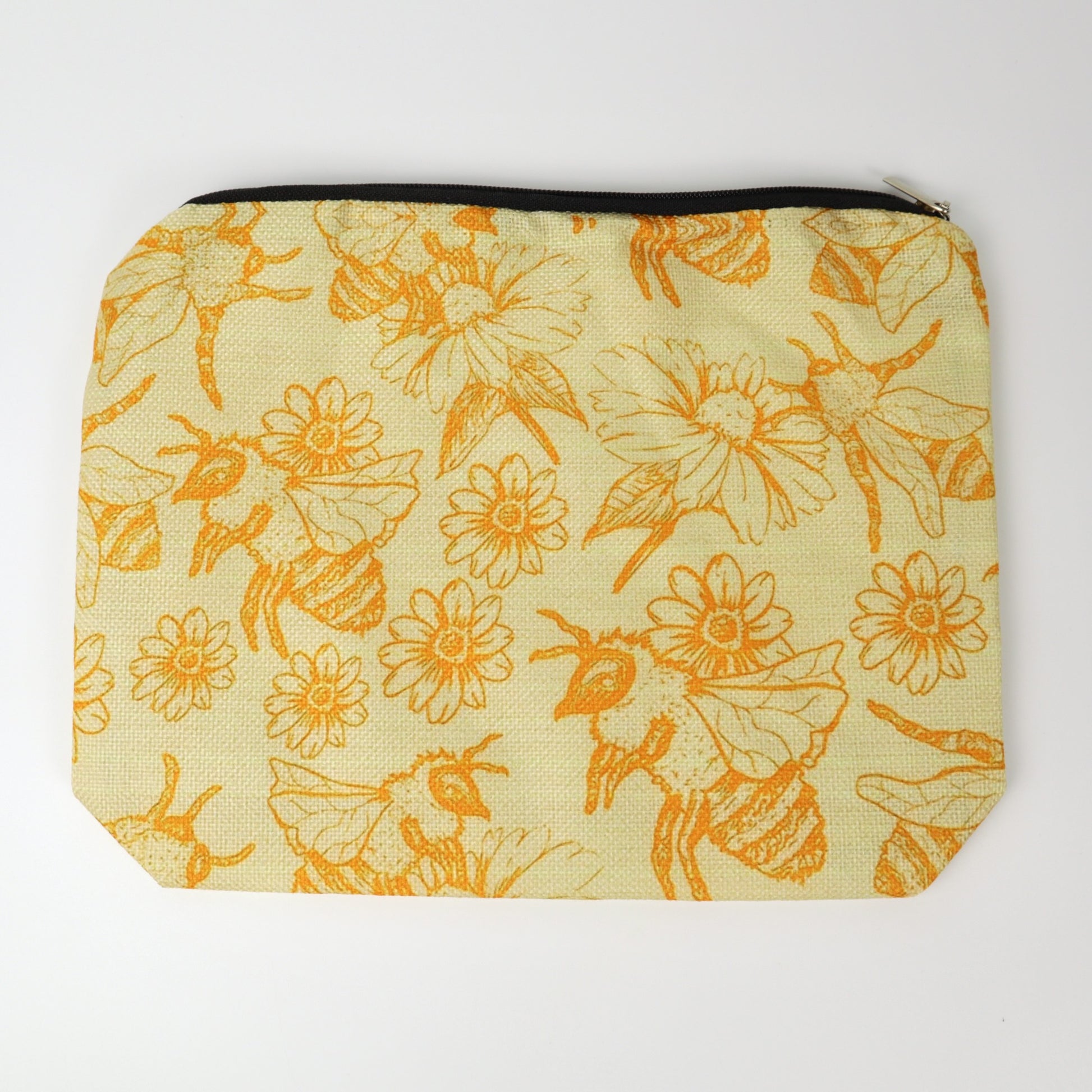 Bolsa de cosméticos con diseño de abejas y margaritas silvestres
